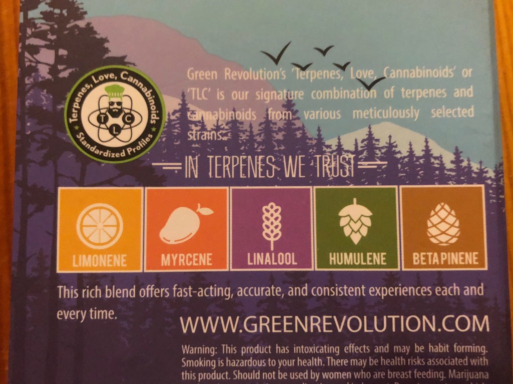 Similarly to Green Revolution’s other products, the joysticks are categorized by cannabinoid profiles: fly (sativa), elevate (hybrid), chill (indica), and relief (CBD). The added terpene taste was appreciated, each one had additional flavors expected by terpene enhancement. The packaging goes above and beyond and lists the specific terpene profile on the back of the 5-packs. Beyond that, they explain on the back how carefully curated the product was between specialized cannabinoids, terpenes, and strains.